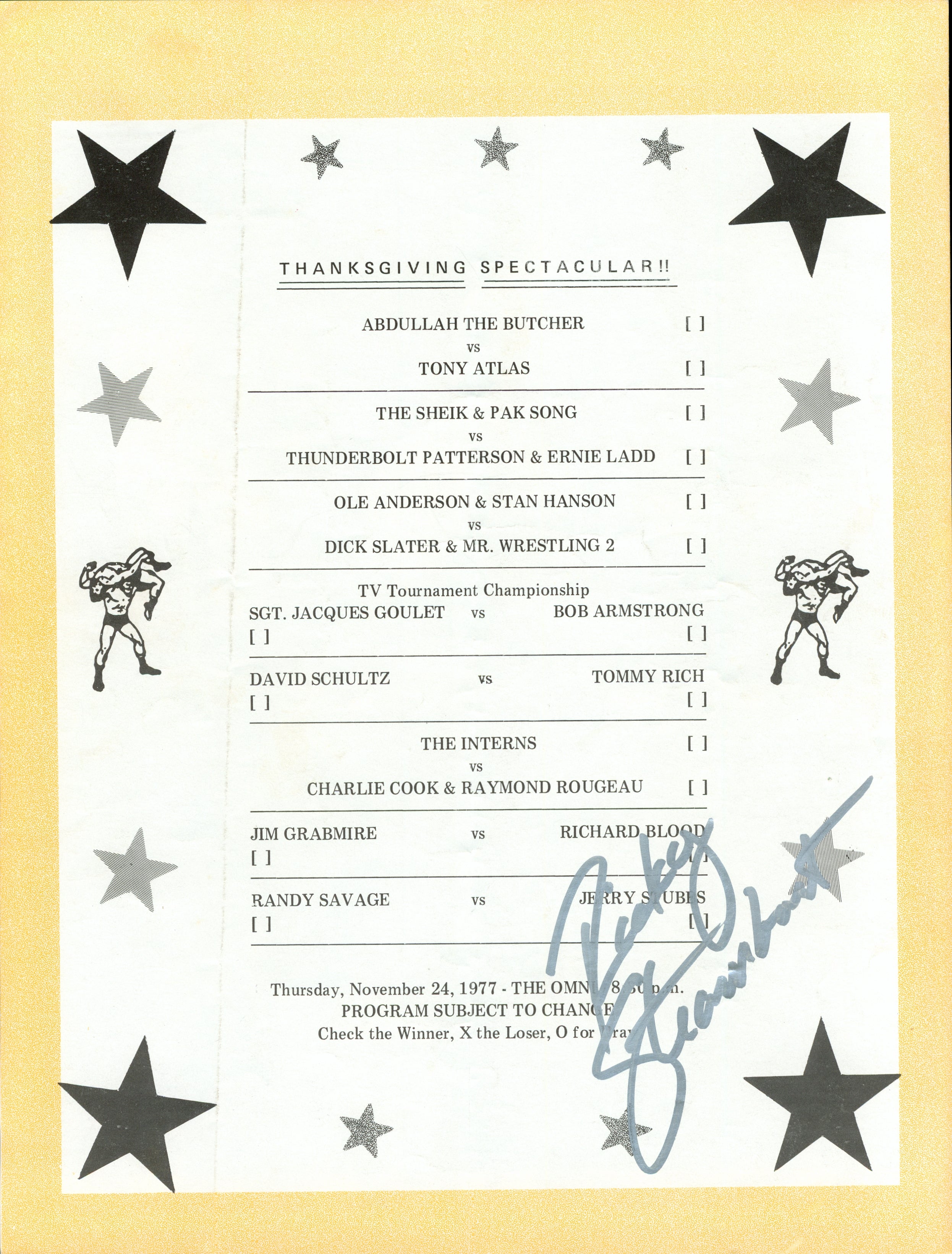 Ricky Steamboat signed Georgia Wrestling Ringsider Program Vol. 77 No. 47 Comparte WhatsApp Deel Tweet Póngale un alfiler. Messenger Correo electrónico Ricky Steamboat signed Georgia Wrestling Ringsider Program Vol. 77 No. 47 Comparte WhatsApp Deel Tweet Póngale un alfiler. Messenger Correo electrónico Forma del producto Ricky Steamboat signed Georgia Wrestling Ringsider Program Vol. 77 No. 47 Leer más... $40.00 Quantity Añadir a la cesta < class="heading-has-image cols cols-mobile text-start align-middle"> Complementa este producto: >